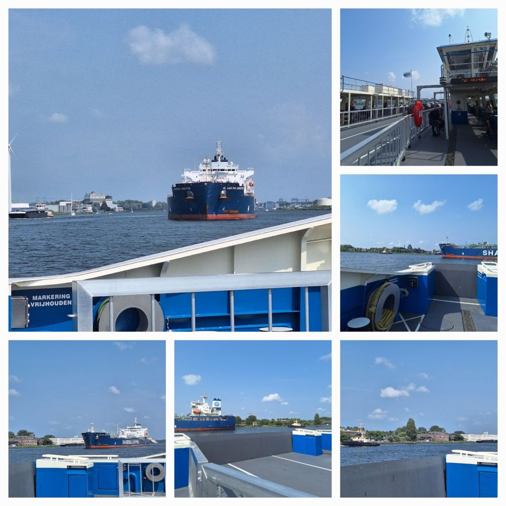 Als ik met de Hempont het Noordzeekanaal oversteek, wordt net de Agatha Christie langsgesleept. Aan de overzijde zie ik stukjes havenspoorlijnen, restanten van de oude spoorlijn.