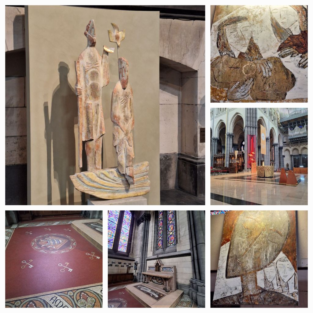 We vergapen ons aan alle moois in de kerk, maar we komen natuurlijk voor het orgel. Het moderne instrument staat hoog in het zuidertransept op grote stalen liggers die in de zijwanden rusten. Gebouwd in 1967 voor Studio 104 van Radio France, ingespeeld door Litaize en daarna bespeeld door o.a. Dupré, Messiaen en Langlais. Herstructurering van de studio maakte het orgel overbodig, maar het heeft wel een belangrijke plaats in de orgelgeschiedenis. En zo werd deze kathedraal in 2008 het nieuwe huis van het orgel. Het lage en brede studio-orgel werd omgevormd naar een hoog een smaller kerkorgel.