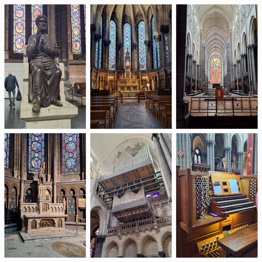 In de kathedraal Notre-Dame-de-la-treille (Onze Lieve Vrouwe van het hek) van Lille zullen we ons eerste concert bijwonen. Verwacht geen eeuwenoude gotische kerk, nee, het is een neogotische kerk waaraan ruim een eeuw gebouwd is. De kerk staat vlak naast de plek waar 750 jaar lang de Sint Pieter stond. In 1792 had deze kerk te lijden in een veldslag om de stad en werd deze afgebroken.