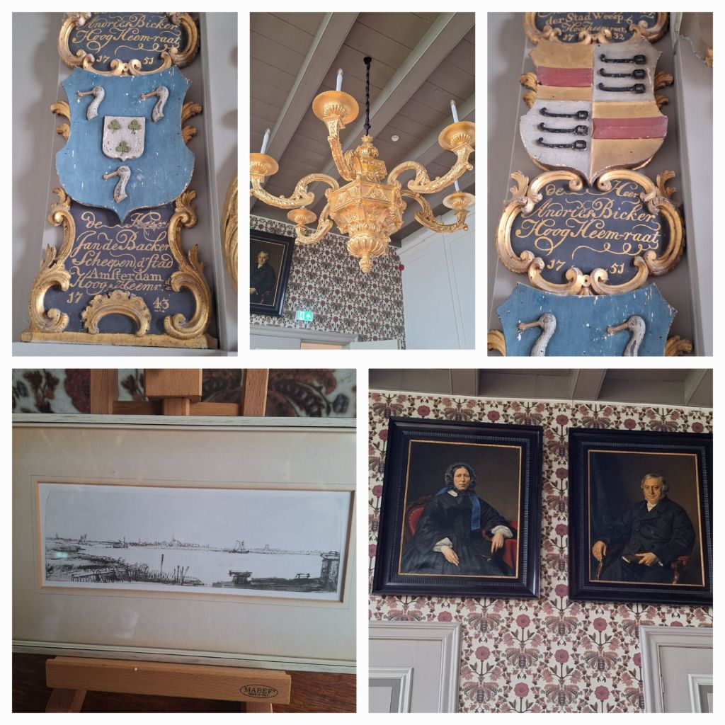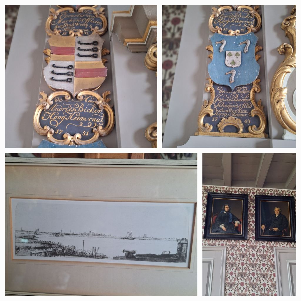 De kleine kamer is waarschijnlijk de eetzaal geweest en later werd het de secretarie. Het heeft een prachtige 18e eeuwse schouw met wapenborden. Ik ontcijfer de namen van Jan de Backer, tot hoogheemraad gekozen in 1743, en Andries Bicker, gekozen in 1751.