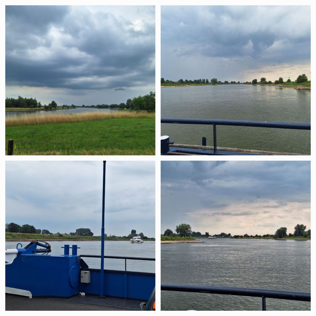 Ik stap weer op de fiets en ga de Hoenwaard in om bij Het Oever weer op de IJsseldijk te komen. In de verte dreigt regen en bij Marle krijg ik even flink wat op mijn dak. Ik schuil even tot het ergste voorbij is en ga dan maar door. Nat ben ik al en koud is het niet. Het veer Vorchten-Wijhe is in zicht.