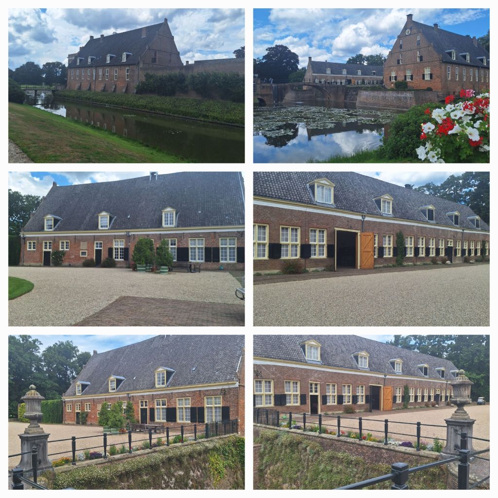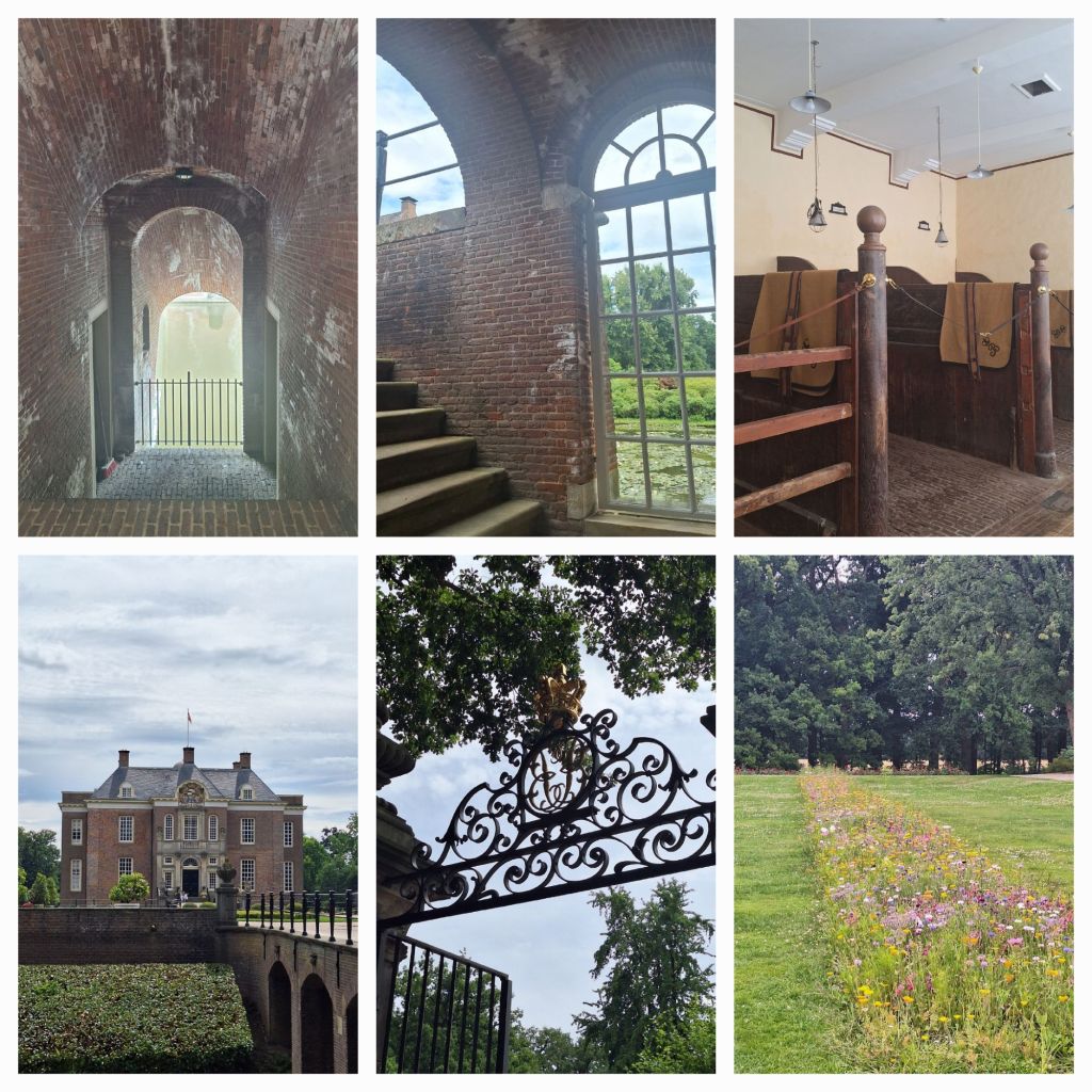 En dat is het eerste wat je ziet als je komt aanhobbelen over het klinkerweggetje. De auto’s zijn ver weg op het parkeerterrein. Het huis is groot en staat in het water, het is statig, Hollands classicisme ten top, op het grote voorplein staat links een 16e eeuws bouwhuis en rechts het 17e eeuwse stalgebouw.