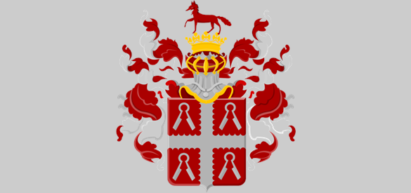 Het wapen van de familie Middachten stamt waarschijnlijk al van eind 12e eeuw. Duidelijk te zien zijn de droogscheerdersscharen, gebruikt om de uitstekende vezeleindjes van geweven stoffen af te scheren. De vier scharen verwijzen ook naar de ‘vierschaar’, symbool van de rechtspraak. Bijzonder: in het Frans heet een dergelijke schaar ‘force’, wat macht betekent. De vlag die boven het kasteel wappert, is ook rood wit, net als de luiken van de (ooit) bij het landgoed behorende gebouwen.
