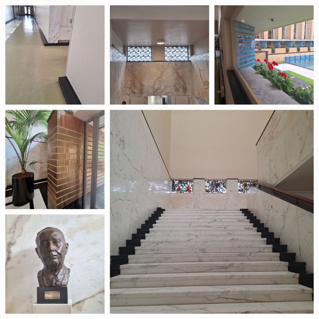 Na een relaxte ochtend stap ik in Hilversum uit de trein en wandel naar het Raadhuis, waar ik een rondwandeling heb geboekt. Ik had wel eens foto’s gezien van het lichtgele gebouw en ik weet hoe het er uitziet.