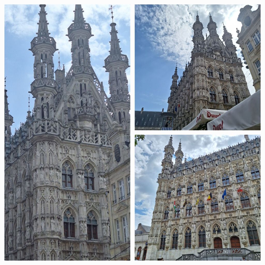 Een korte wandeling en we zijn bij het schitterende Leuvense stadhuis. Dit stadhuis uit het midden van de 15e eeuw is één van de bekendste gotische stadhuizen ter wereld. Je kunt uren met je hoofd in de nek naar de gevels kijken. Als een stripverhaal staan daar allerlei beelden uit de bijbel en de geschiedenis opgesteld.