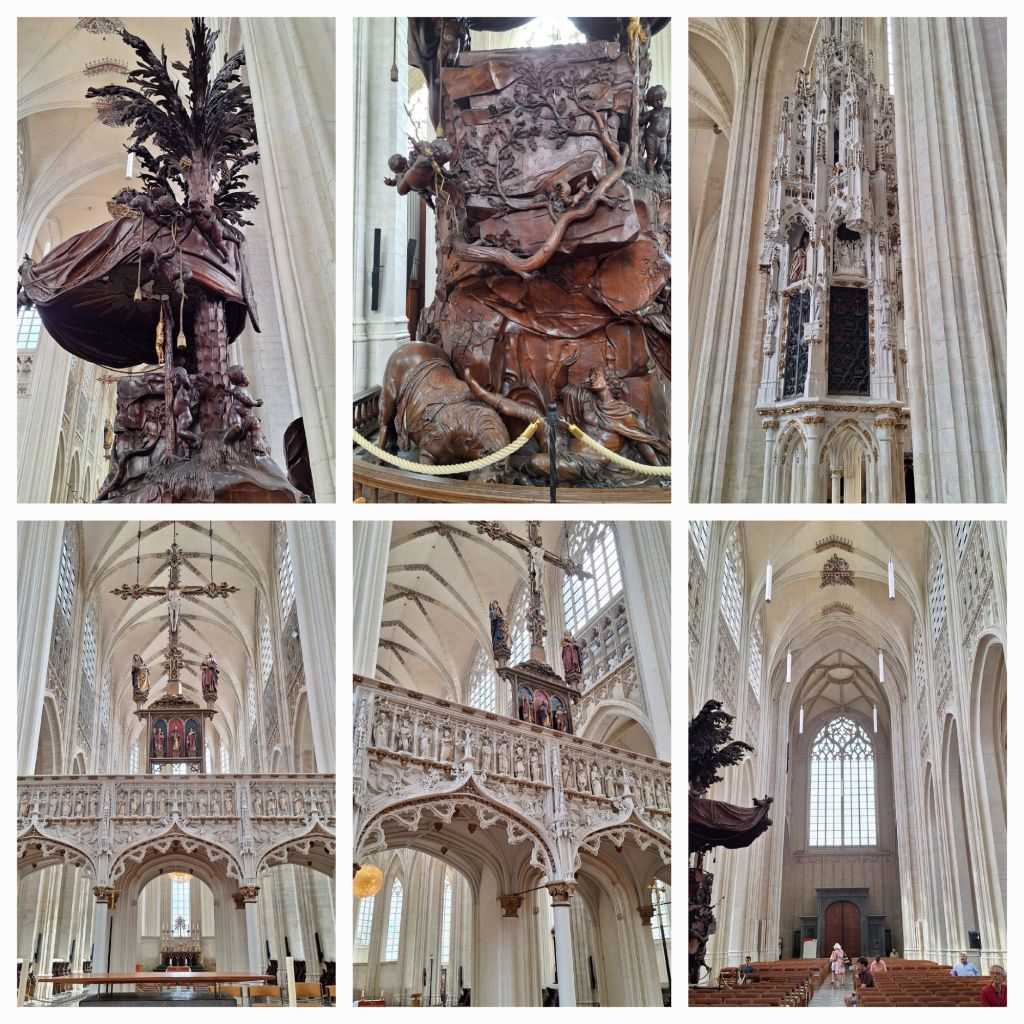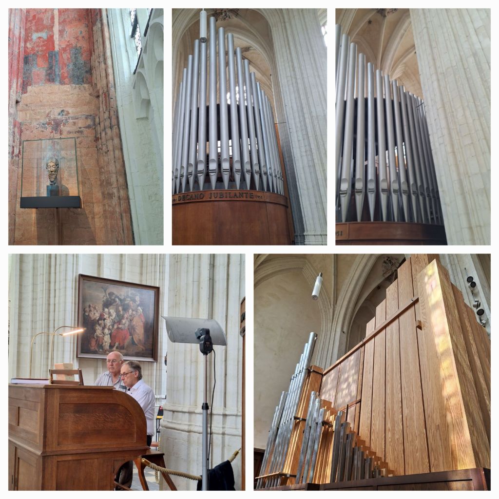 De grote kerk is van binnen heel licht en heel hoog. Alleen bij een kapel is nog iets terug te zien van de vroegere beschilderingen. Er staat een naturalistische preekstoel, met levensechte afbeeldingen van mensen en dieren, waaronder een paard en twee wuivende palmbomen. Maar ik zie geen orgel. Links niet, rechts niet, maar dan zie ik het. Vlakbij de hoofdingang in een kapel. Een grote ronde vorm, vrij losstaande pijpen, een grote speeltafel ernaast, achter het orgel zie ik grote houten pijpen en als ik ga zitten, zie ik in het orgel twee zwelwerken zitten. Wat een merkwaardig ding?