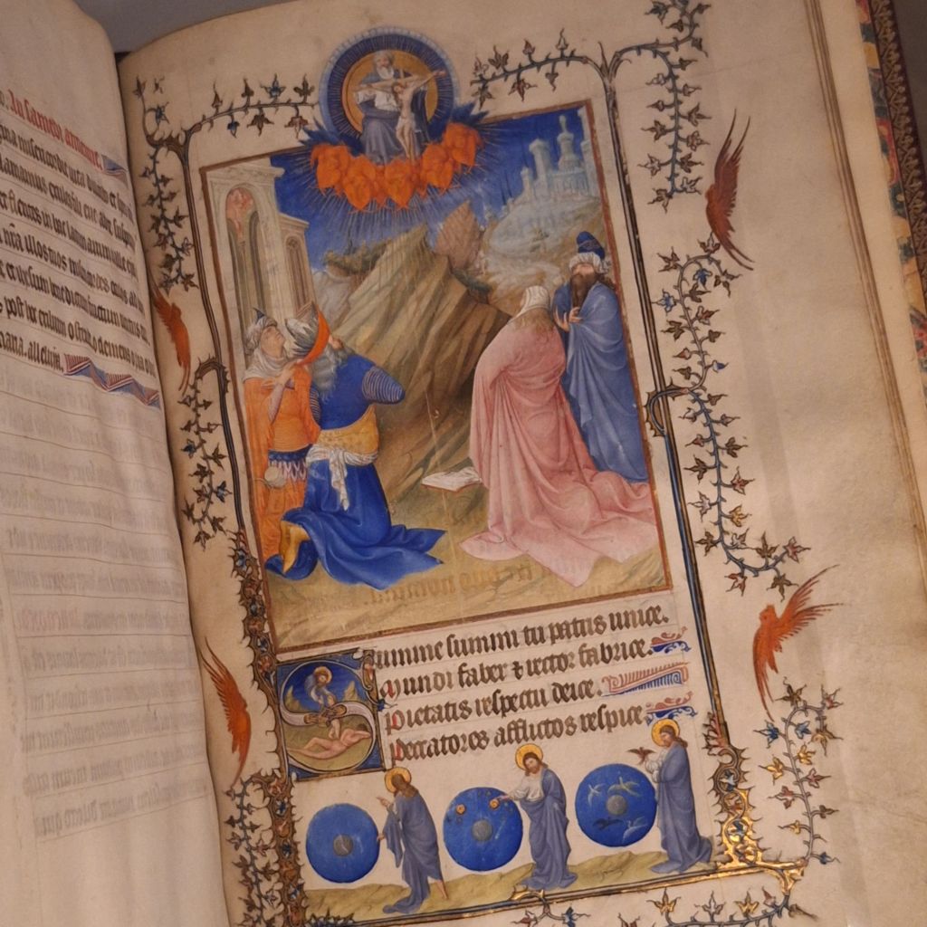 Waarom ik dit wilde zien? In 2005 heb ik in Nijmegen de tentoonstelling bezocht waar bladen uit de Belles Riches Heures du Duc de Berry werden tentoongesteld. Ik heb me daar vergaapt aan de schoonheid van de geschilderde bladen van dit boek.
