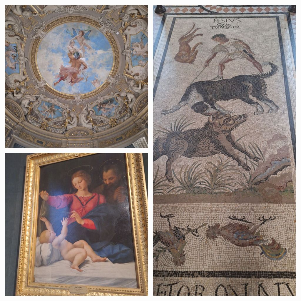 Dat is reden genoeg om even naar binnen te lopen. Overal is wel iets moois te zien. Tapijten, plafondschilderingen, ornamenten, marmeren trappen, met goud versierde deuren, een bibliotheek, serviezen, tekeningen, een kapel opgedragen aan Frankrijk en de Grote Condé. En schilderijen, veel, heel veel schilderijen. Er hangt werkelijk van alles, maar ik zoek een Rafaël en die vind ik ook nog. Er hangen Mierevelts (o.a. van Hugo de Groot), een zeegezicht van Van der Velde en nog veel meer moois. Het is echt prachtig, maar teveel voor een kort bezoek. Hier moet ik nog eens terugkomen, zoveel is wel duidelijk.