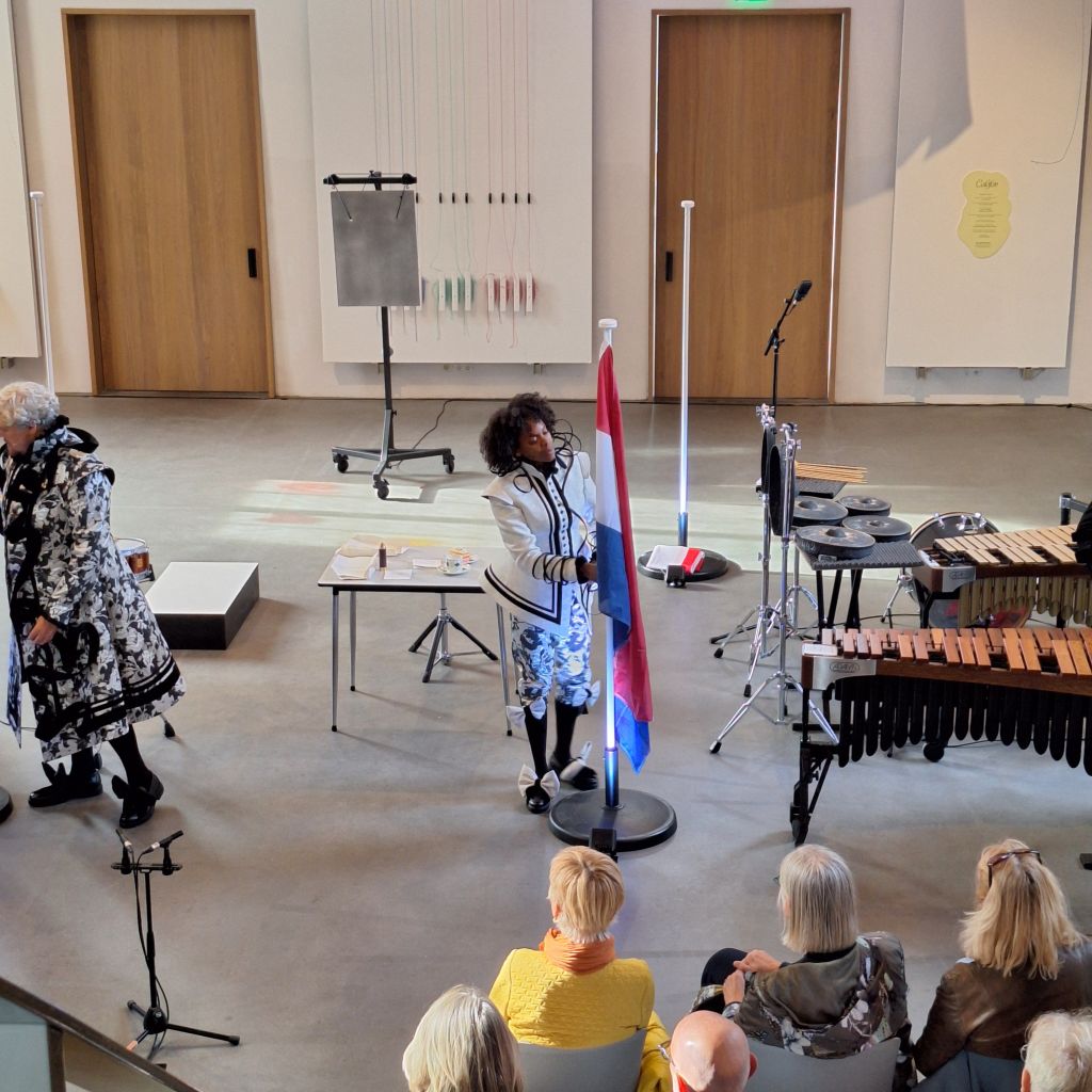 Als laatste krijgen we in de kunstkerk (gewoon het bloemperk oversteken) een muziektheatervoorstelling. Johan wordt door drie spelers voorgesteld: de slagwerker die zijn werklust verbeeld, de bariton die zijn hart laat zingen en de stadsdichter die hem woorden geeft.