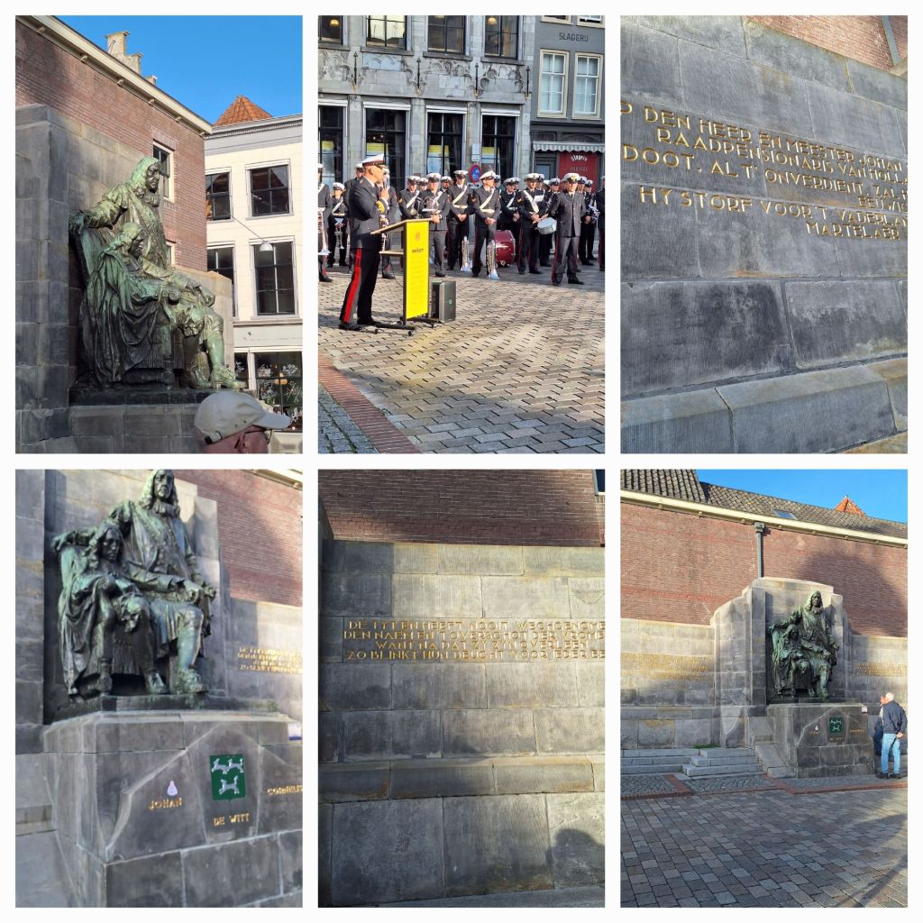 En dan gaan we met een stadsgids de stad van Johan door. Uiteraard staan we stil bij het geboortehuis, we zien de Grote Kerk, de Houttuinen (vader De Witt was houthandelaar) en op de Visbrug het standbeeld van de broers. Tuurlijk wordt het verhaal verteld dat klokslag middernacht Cornelis even op de stoel van Johan mag gaan zitten.