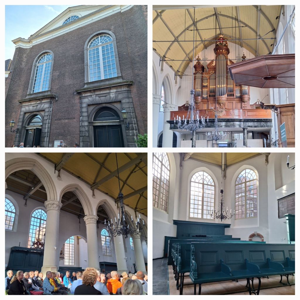 We blijven vandaag op een klein stukje Dordt. Vanuit de kerk staan we op het Hof van Holland waar in 1572 de Eerste Vrije Statenvergadering plaatsvond. Dan over het terrein van het Augustijnerklooster en we staan bij het Dordrechts Museum. We hebben vandaag een druk programma met nog drie lezingen en drie activiteiten. Ik ben ingedeeld in de blauwe groep en nu krijgen we eerst een lezing van Marianne Eekhout.