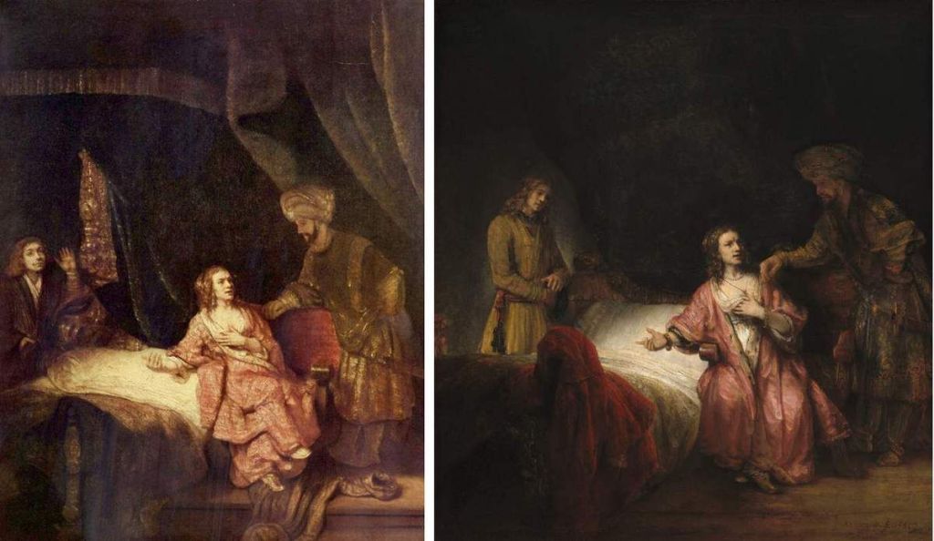 Bij Rembrandt zie je een schedel onder de huid, haar hand maakt een bijna verachtelijk gebaar naar Jozef en haar pols is zo natuurlijk geschilderd.