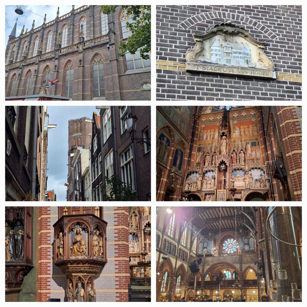 We starten in de vrij onopvallende Dominicus aan de Spuistraat. Vanaf het station ben ik er zo. Bij de zijingang hangt een oude gevelsteen ’t Stadhuys van Hoorn’. Dat is de naam van het huis waar vanaf 1621 deze schuilkerk zat. In 1829 werd een nieuwe gevel voor het gebouw geplaatst. Na 1853 (herstel van de bisschoppelijke hiërarchie in Nederland) werden plannen gemaakt voor een nieuwe grote kerk.