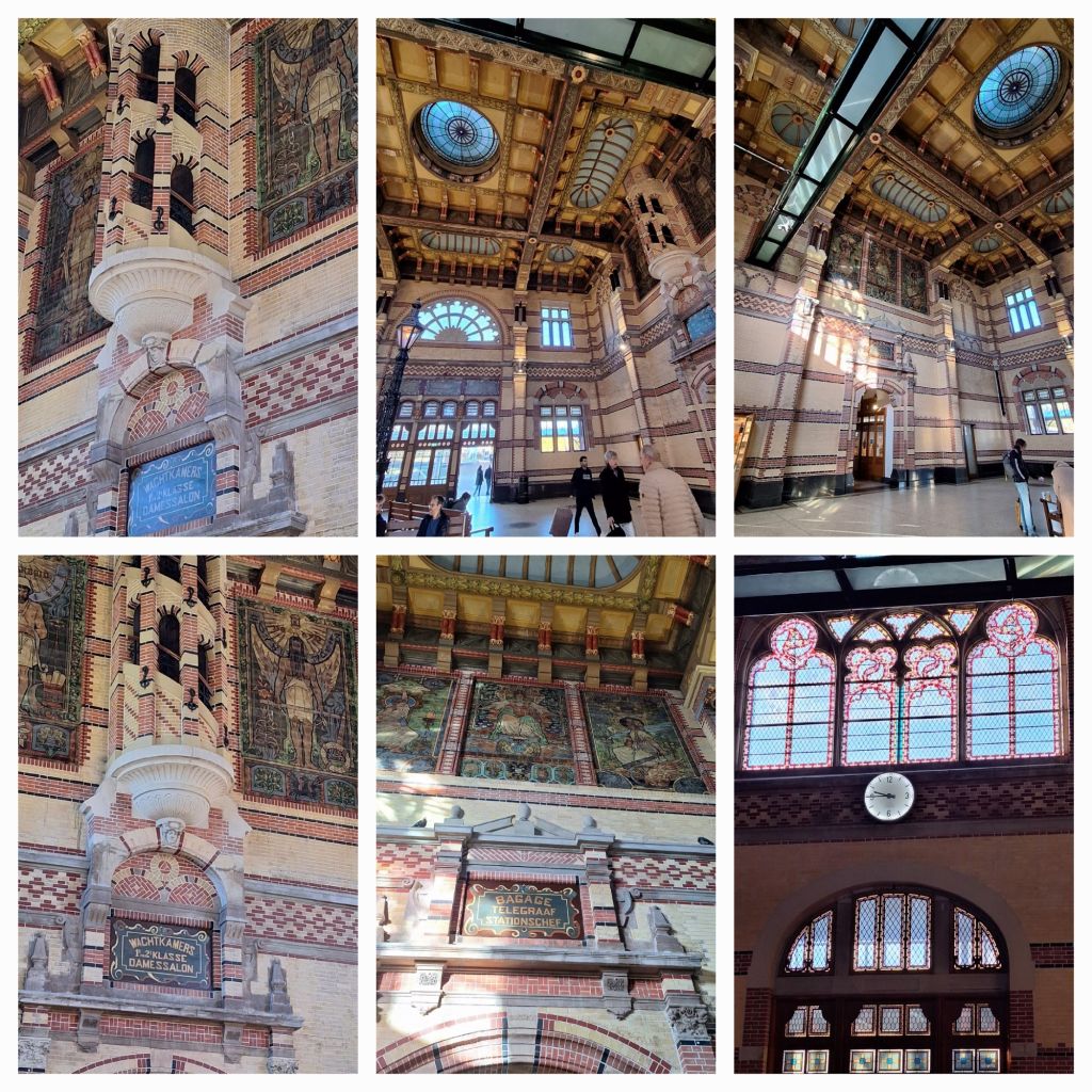 In 2019 is dit station verkozen tot mooiste station van Nederland en ik snap dat wel. Het gebouw uit 1896, het derde station op deze plek, mengt Renaissance en Gotische stijlelementen op heel bijzondere wijze. Prachtige tegeltableaus, glas-in-loodramen, tweekleurig metselwerk, een bakstenen torentrapje. En die archaïsche opschriften: Restaurateur, telegraaf, opzichter, wachtkamer 3e klasse, damessalon. Het was een andere tijd.