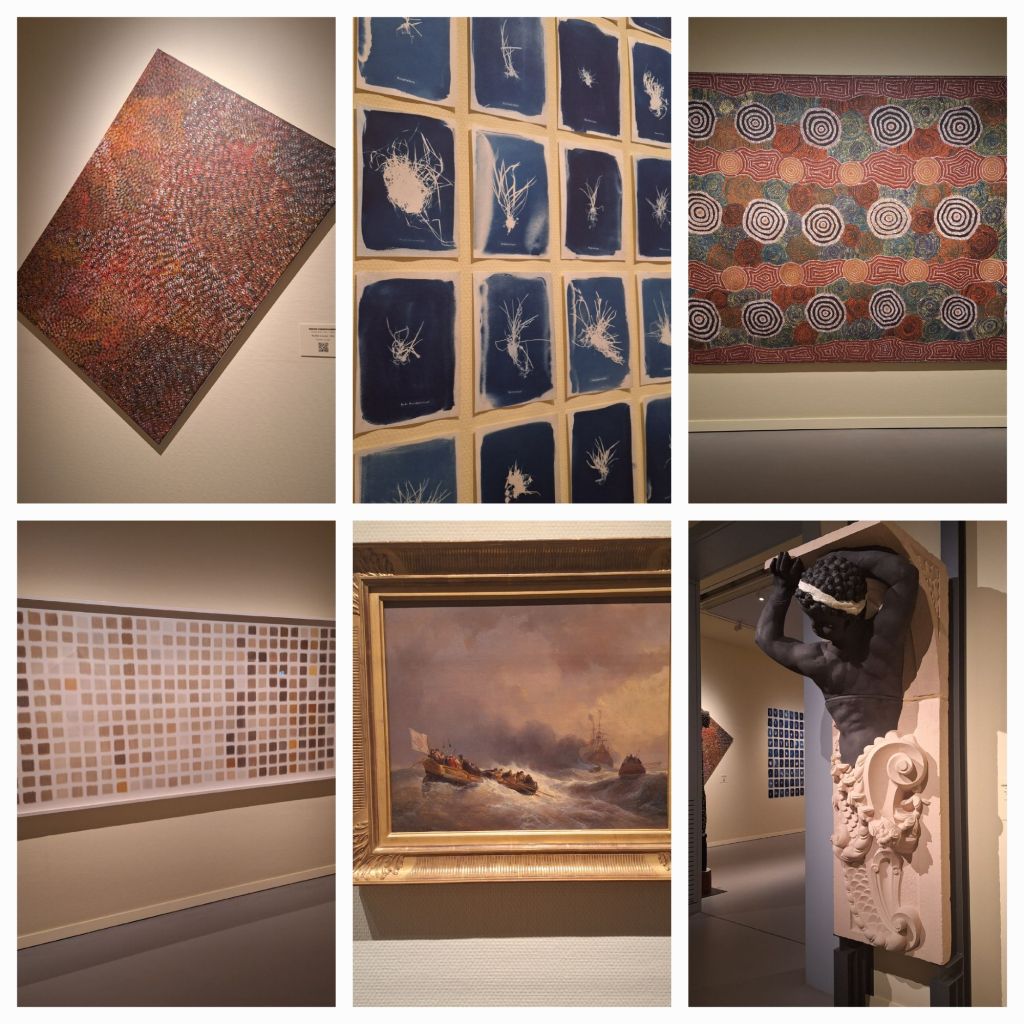 Afgelopen zomer had ik de tentoonstelling It’s About Time al vluchtig gezien, nu neem ik de tijd. Het is wat ze eclectisch noemen. Rond het overkoepelende thema tijd heeft de conservator gegrasduind in de collectie. Aboriginal kunst tegenover moderne kunst, hyper-realistische moderne schilderijen tegenover zonnewijzers van eeuwen her. Hellebaarden, smeltende koffiekannen, foto’s, regionale en internationale kunstenaars: men probeert de verzamelgeschiedenis en het gebouw zelf hierin te weerspiegelen. Ik hou er wel van! Ik hoop stiekem op een vervolg rond een ander thema.