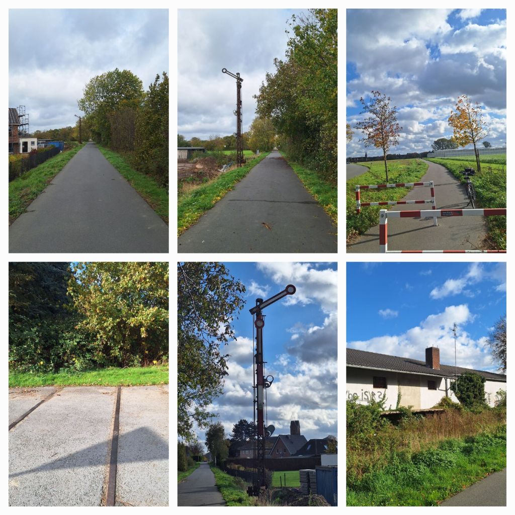 Ik fiets terug naar Kalkar over een voormalige spoorbaan, nu de Alleenradweg. Hier liep de lijn Rheinhausen-Kleve, aangelegd tussen 1903 en 1904 onder de naam Hippeland-Express. Het deel Xanten – Kleve is sinds 1989 buiten gebruik en in 2003 opgebroken. Nu ligt er een prachtig fietspad,