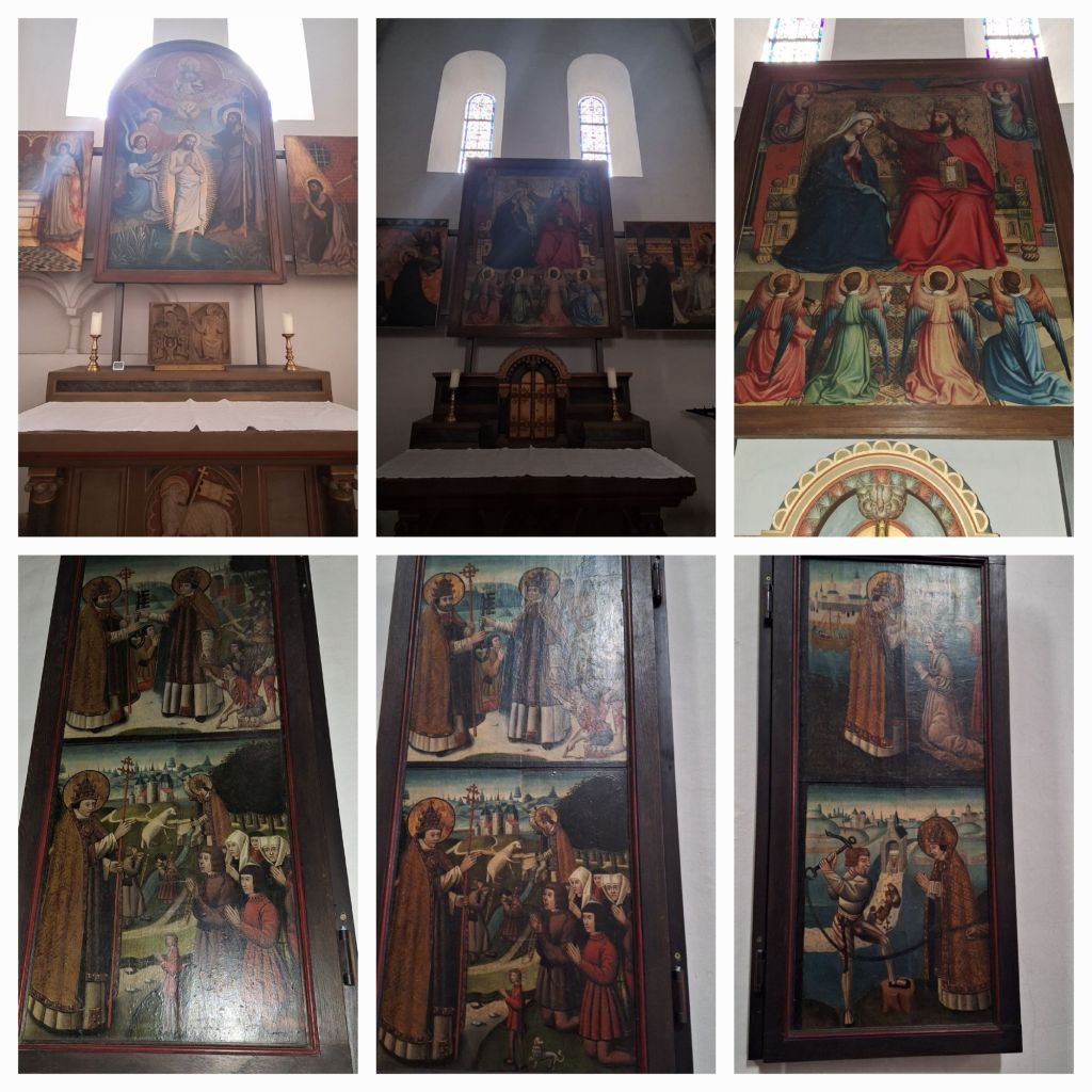Terug in Kalkar ga ik linea recta naar de Nicolaikirche. Deze is nog open tot vier uur en ik wil nu de ramen en de altaren wat beter bekijken. De kerk heeft een voorloper gehad die in 1230 werd gebouwd, maar deze kerk werd door brand verwoest. Tussen 1409 en 1450 werd de kerk herbouwd en door de diverse gilden en broederschappen voorzien van altaren, zeker vijftien! Begin 19e eeuw zijn diverse altaren verkocht om de kerk te kunnen onderhouden, maar vandaag de dag staan er nog steeds negen in de kerk. Na de Tweede Wereldoorlog werd de zwaar beschadigde kerk gerestaureerd.