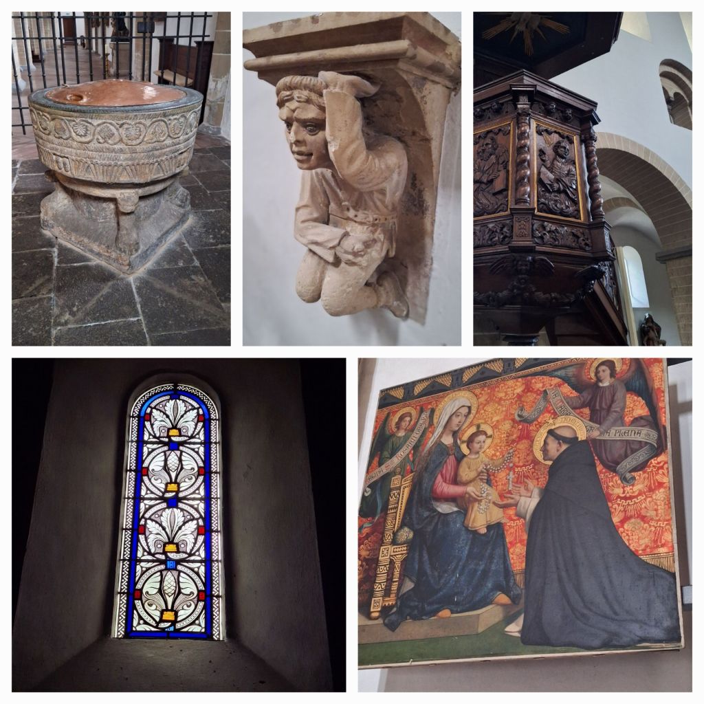 En dan sta ik echt even met open mond te kijken. Ik ben helemaal alleen in de grote Romaanse kerk met gotisch koor. De kerk is niet beschilderd, de zijwanden hebben kleine Romaanse raampjes, het is er stil, her en der brandt een kaarsje. En verder niets…