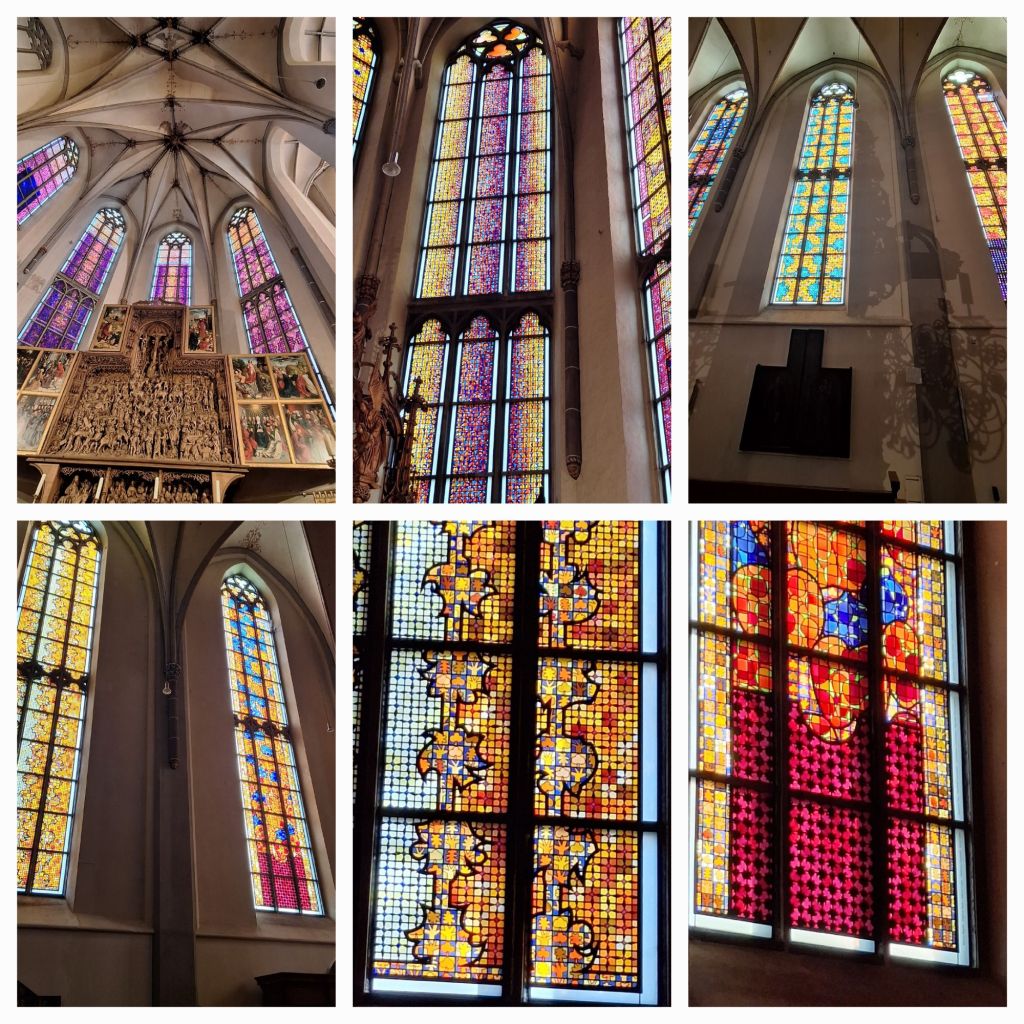 Wat een heerlijke dag was het vandaag! Lekker uitgeslapen, daarna naar de Markt, naar de bakker voor een lekker ontbijt en daarna liep ik de Sankt-Nicolai in. De hoogmis was nog gaande en ik bleef even zitten. De spiritualiteit en de sereniteit ondergaan en het gebouw bewonderen, vooral de ramen. De altaren zie ik ook wel, maar zoveel licht is er nu niet.