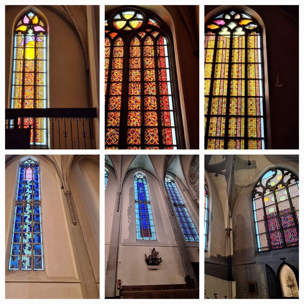 Maar de kerk heeft nog meer moois. Vanmorgen had ik de ramen al kunnen bewonderen, maar vanmiddag is er wat zon en nu kan ik pas echt zien hoe mooi ze zijn. En vooral ook: hoe kleurrijk!