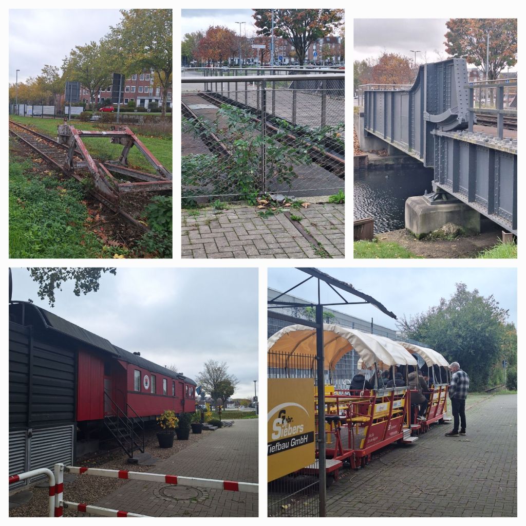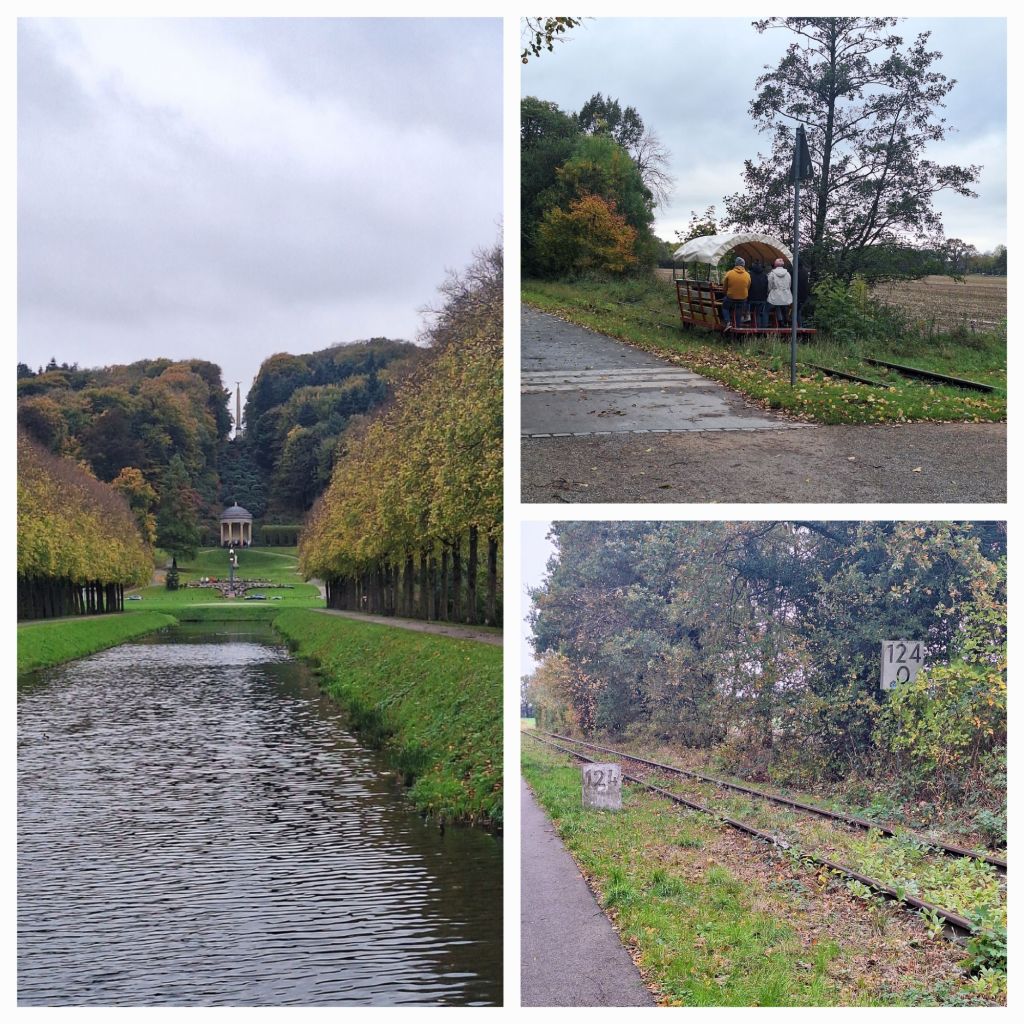 Ik rij vervolgens weer over een stuk van de opgebroken spoorlijn van Kleve naar Kalkar en kom bij het station van Kleve uit. Ik twijfel of ik de Zwanenburcht nu ga bezoeken, maar de donkere lucht in de verte brengt me op andere gedachten. Wel stop ik nog even bij het draisine-station. Een groep mensen krijgt uitleg en stijgt in.