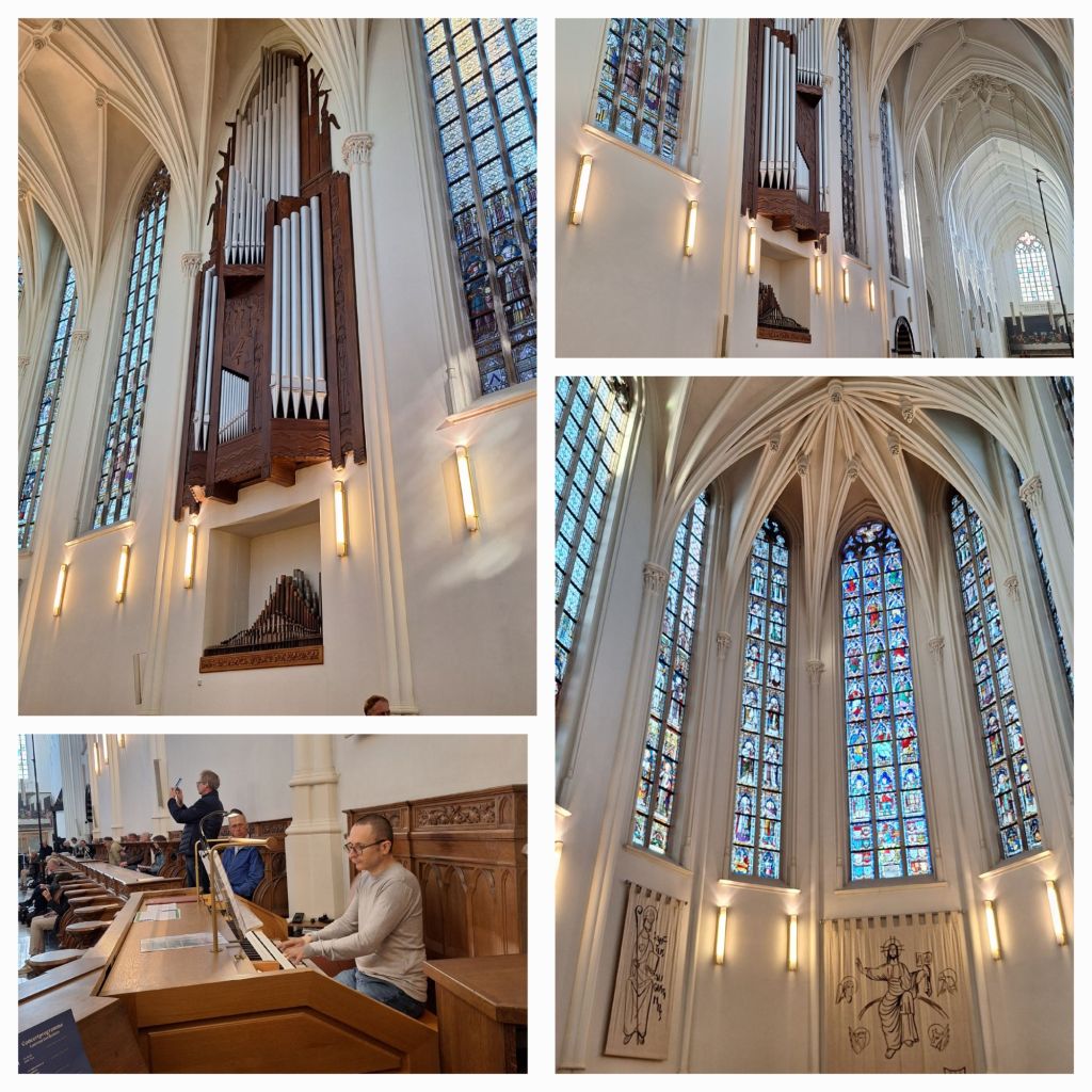 Laurens Gardeniers is de titularis en hij heet ons van harte welkom en nodigt ons uit in het koor plaats te nemen. Hij vertelt dat de vroegere kerk al in 1412 een orgel moet hebben gehad. Dat werd vervangen door een Renaissance-orgel en nog weer later een barok-orgel. Dat ging met de kerk ten onder in de revolutie.