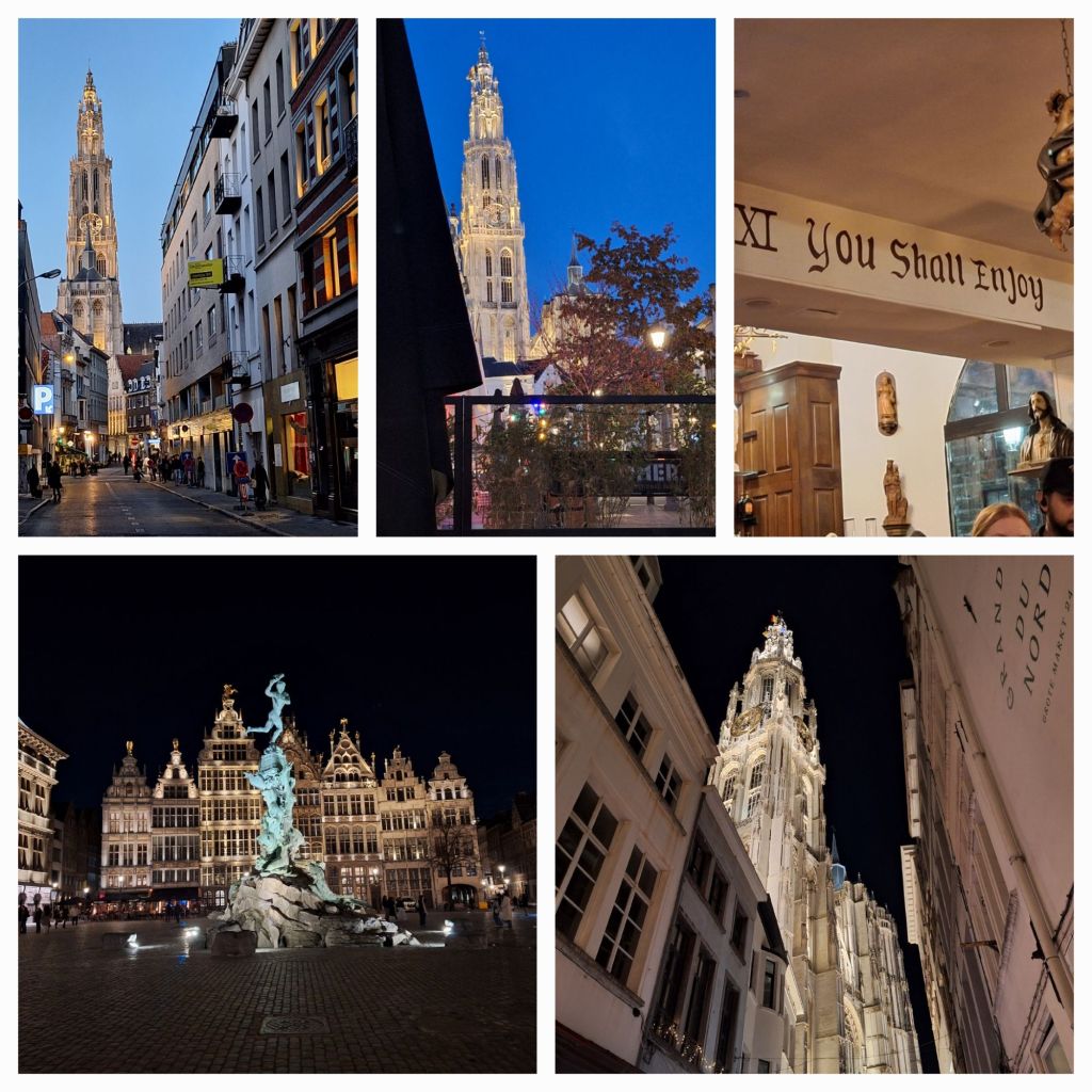 Op naar de maaltijd! Met een klein groepje loop ik alvast naar het restaurant. Een klein half uurtje later zitten we op het terras van Het Elfde Gebod Riverside aan de kaai. Uitzicht op de toren van de kathedraal, een Elfde Gebod Blond in de hand.