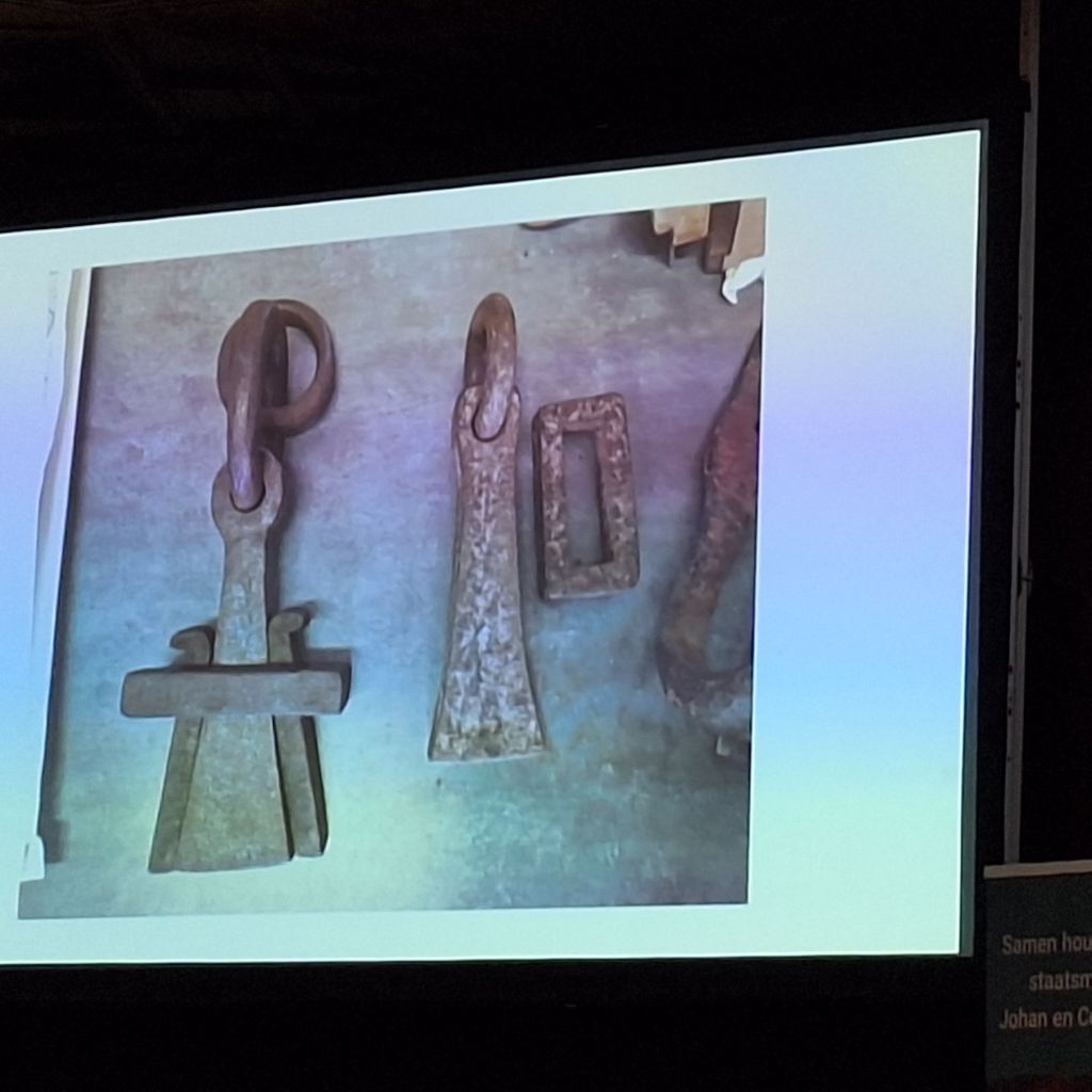 Weten we wat dit is? Cultuurhistoricus Celine Oldehage toont ons een foto van stukken oud metaal. Het blijkt een wolf te zijn. Wolfen is het openen van een graf in de kerk met behulp van een metalen mechaniek. Ze vraagt ons naar de grond onder onze voeten te kijken. In iedere grafplaat zit een rechthoekig gat. Dát is waar de wolf werd bevestigd en zo kon een grafplaat worden verplaatst.