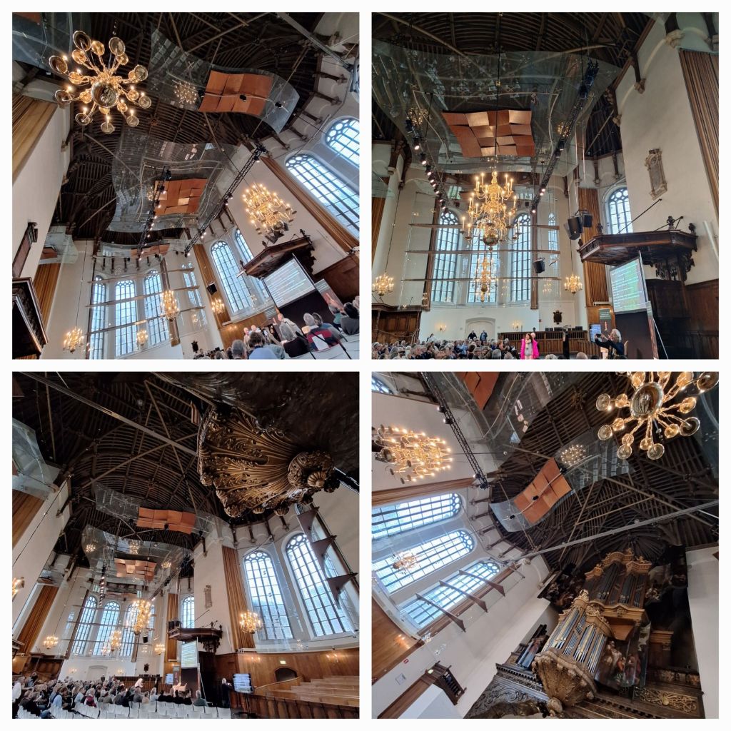 Sinds 1702 hangt er een Duyschot-orgel in deze kerk, waarvan het grootste deel van het pijpwerk nog origineel is. We krijgen een kwartiertje orgelmuziek voorgeschoteld en, eigenlijk wel grappig op een bijeenkomst rondom Johan de Witt, de muziek is geënt op een concert dat gegeven werd door Handel in deze kerk voor stadhouder Willem IV en zijn vrouw Anna van Hannover, de dochter van de Engelse koning en leerlinge van Handel.