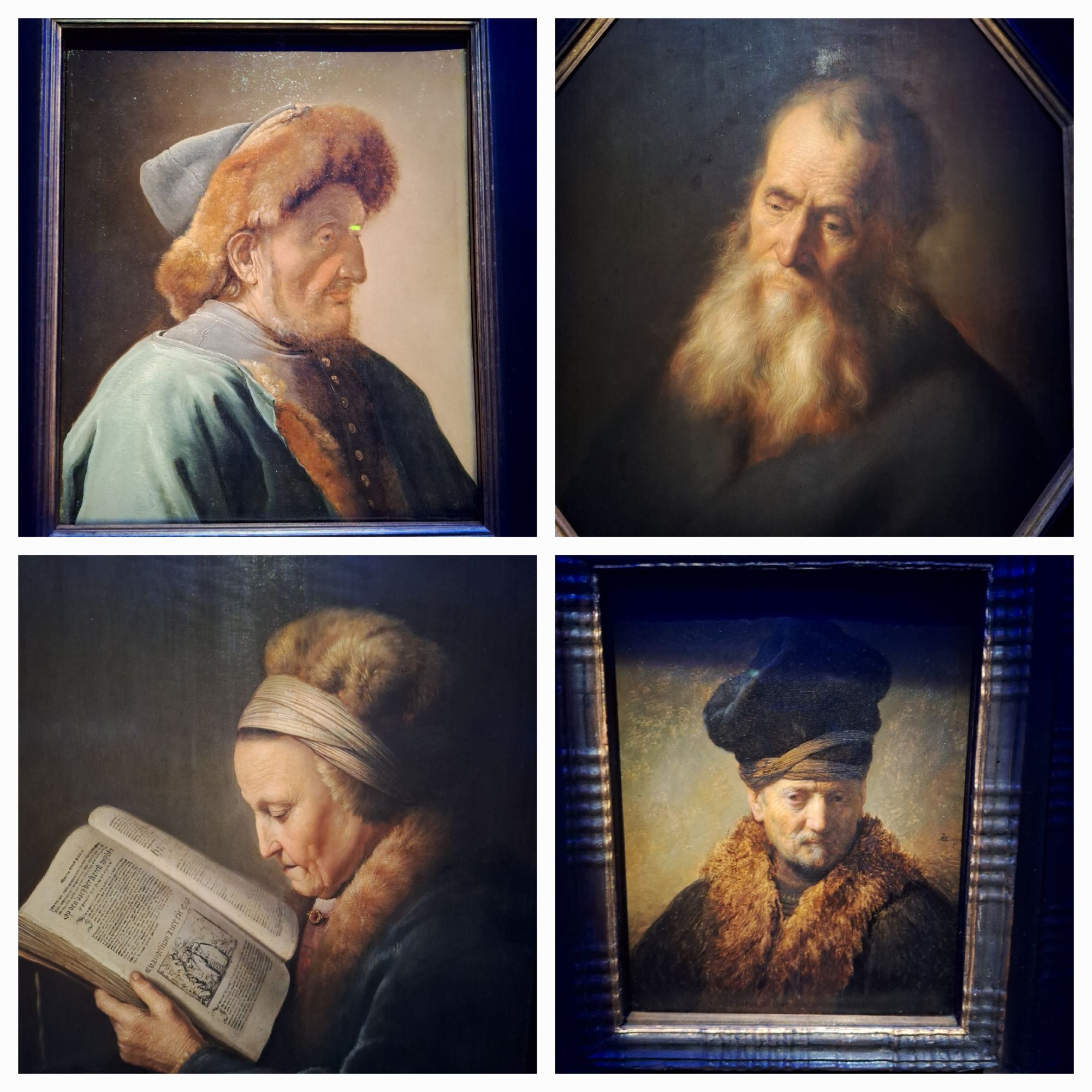 De zwart-met-nachtblauwe zaal zorgt ervoor dat je je goed kan focussen op de schilderijen en met behulp van Lakenhal-app krijg ik in mijn oren gefluisterd waar ik op moet letten.