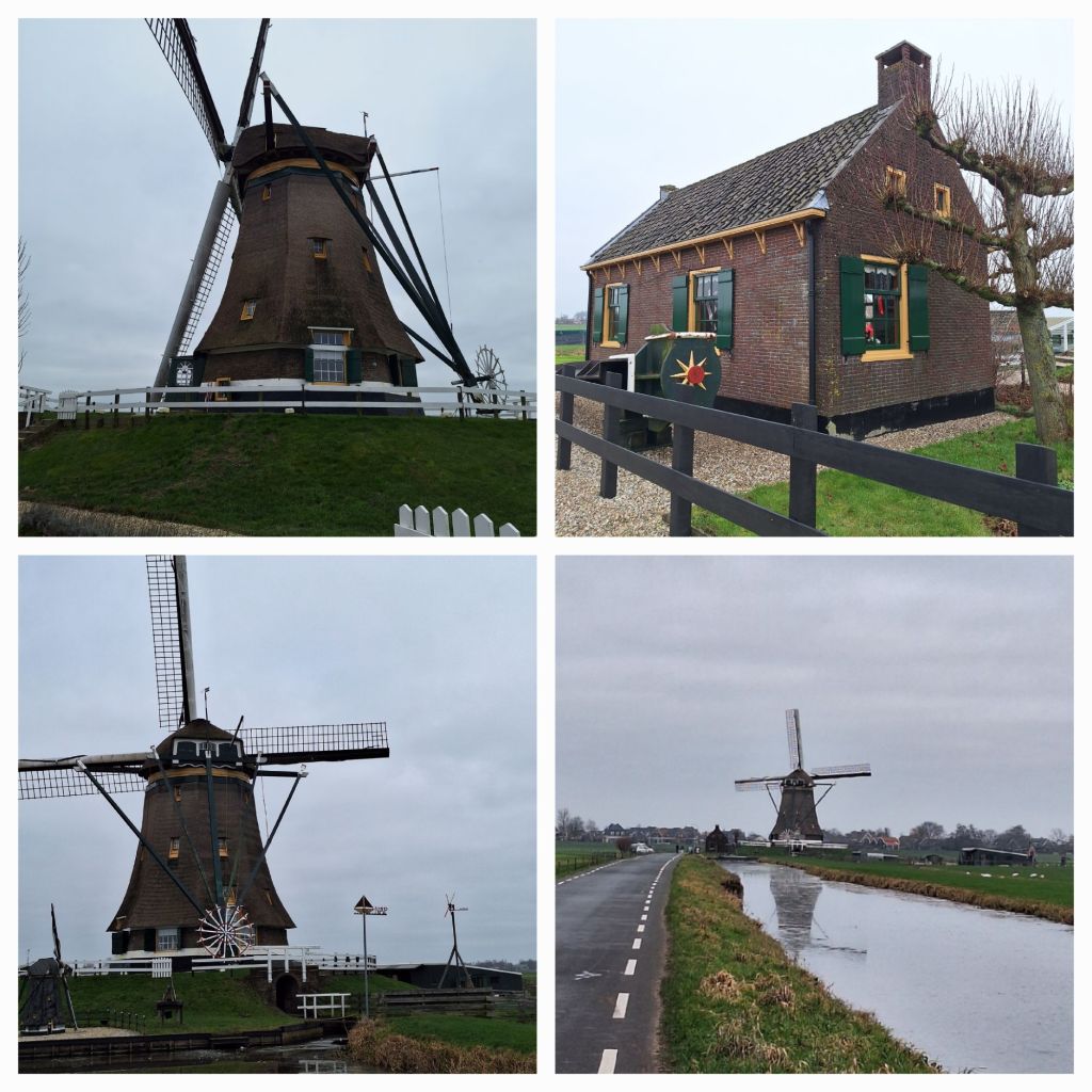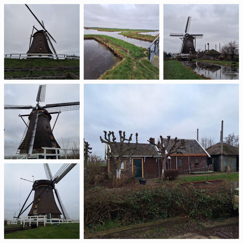 Ik probeer het me voor te stellen: vlak achter het dorp was een grote en diepe waterplas van maar liefst 500 hectare ontstaan door het baggeren en vervenen en deze vier molens hebben die plas leeggemalen. Water, wind & wieken, zoals het zo mooi op de website van de viergang staat.
