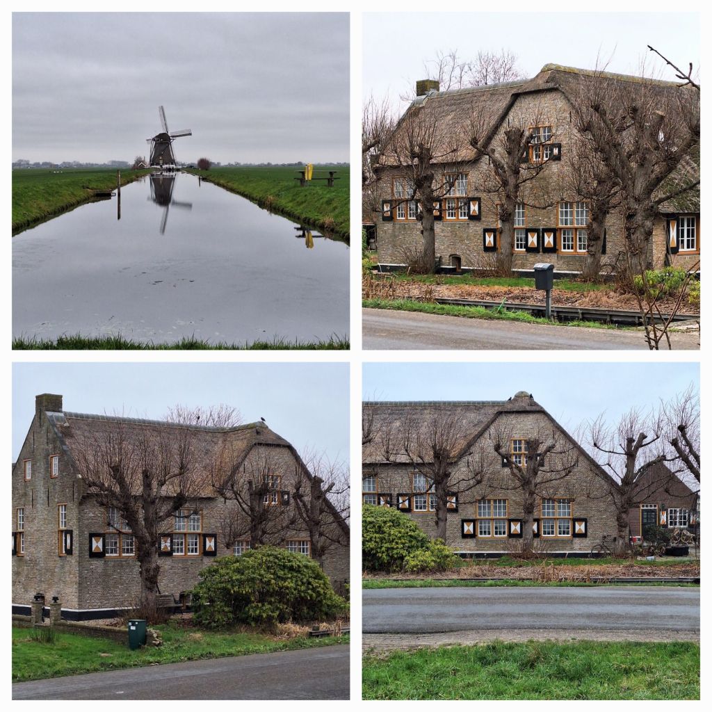 Ik eet mijn broodjes op aan de kant van de weg, loop naar het voormalige station, langs de kerk en het oude Rechthuys en dan over de smalle dijk waaruit Aarlanderveen bestaat. Er staan prachtige huizen en boerderijen, sommige wel wat scheefgezakt. Over een erf moet ik met een boomstam over een sloot om zo weer de polder in de komen. Dan merk ik pas hoe diep de polder is.