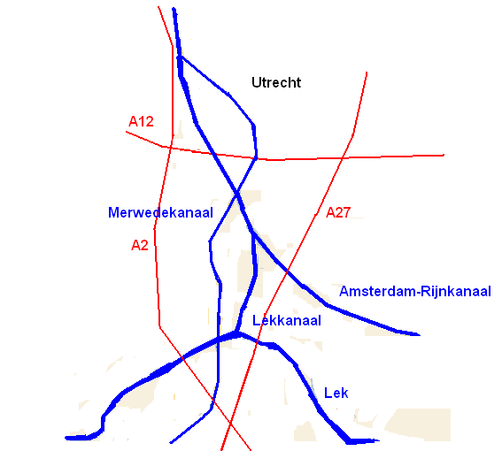 Deze verbinding over Utrecht was lang vanwege de bochten in de rivier, maar ook kostbaar vanwege de vele tollen en het feit dat de schepen vaak gejaagd moesten worden. Ze werden voortgetrokken door paarden als er geen of te weinig wind was om te zeilen.