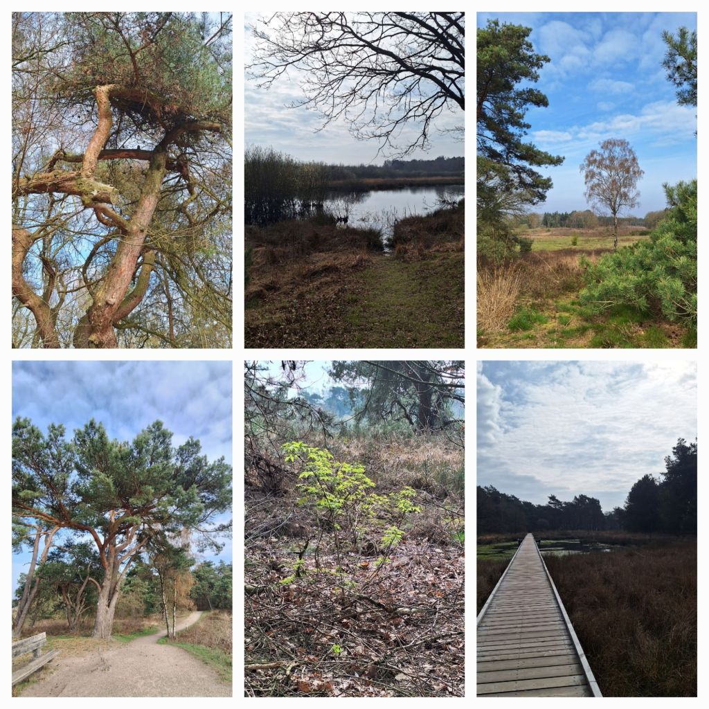 Er staan vliegdennen met grillig gevormde takken, overal fluiten vogeltjes, op de vennen dobberen eenden en ganzen, de ‘bergen’ zijn stuifduinen die soms behoorlijk hoog zijn. Net voor ik het gebied verlaat, eet ik even mijn broodje op.