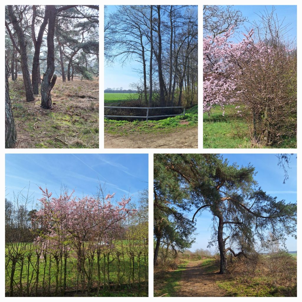 Het is zonnig en zelfs warm, nu ik met de wind in de rug loop en dus mag mijn trui in de tas.