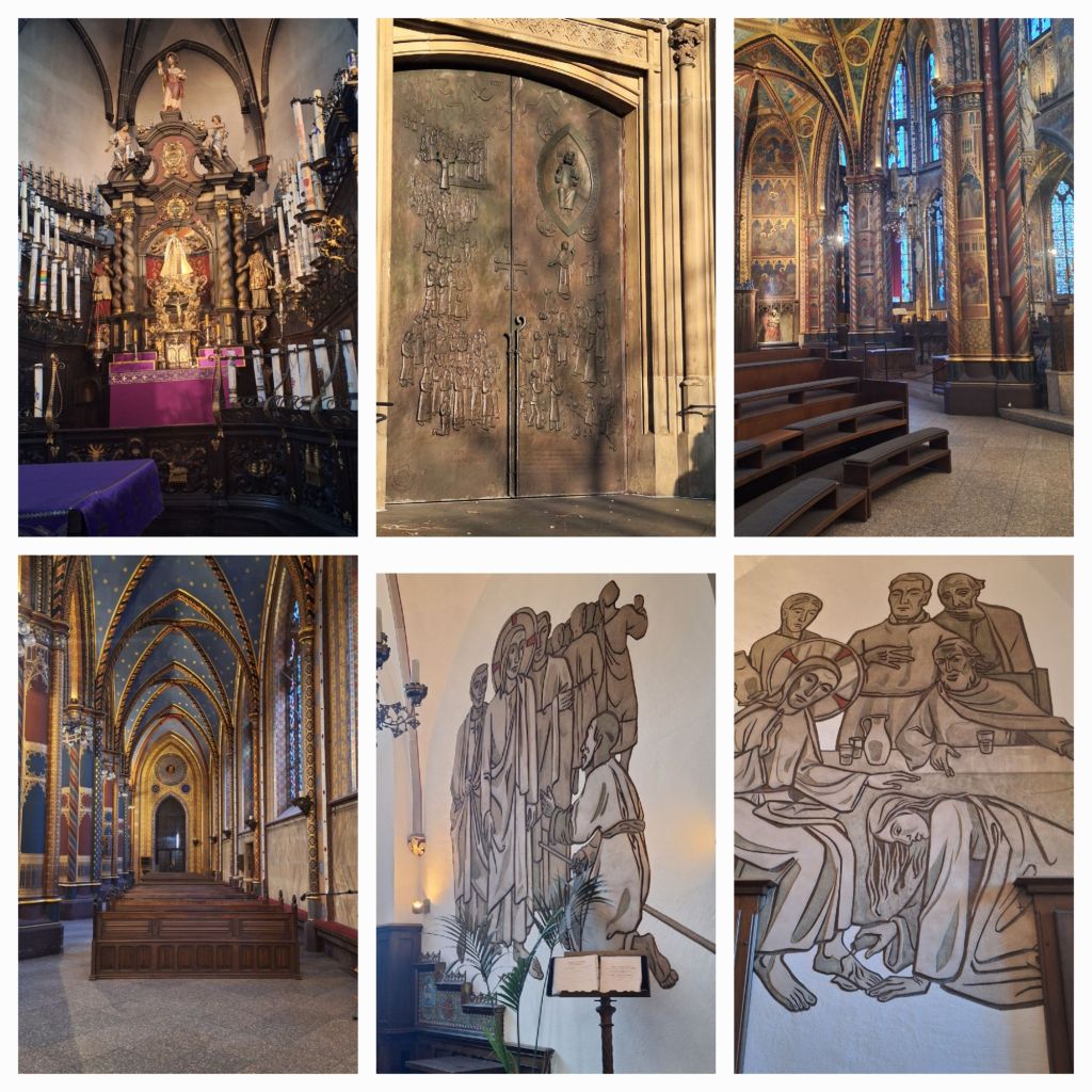 Het einddoel is in zicht! De toren van de Mariabasilika van Kevelaer steekt af tegen de blauwe lucht. Na ruim 28 kilometer ben ik op het Luxemburgplein en ik heb nog even de tijd. Dus ga ik overal even binnenkijken (en soms ook even zitten, hoor!). De kaarsenkapel, de genadekapel, de sacamentskapel, de Getsemane-kapel en natuurlijk de basiliek.