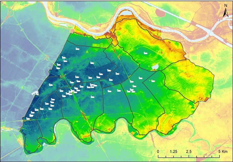 Kijk je op een hoogtekaart van de Culemborger Waard met zijn tien dorpspolders, dan valt op dat de kooien zich in de diepste delen van de waard bevinden en binnen de polders ook weer op het diepste punt. Twee polders hebben geen kooi, de rest wel en de diepste polders hebben de meeste kooien.