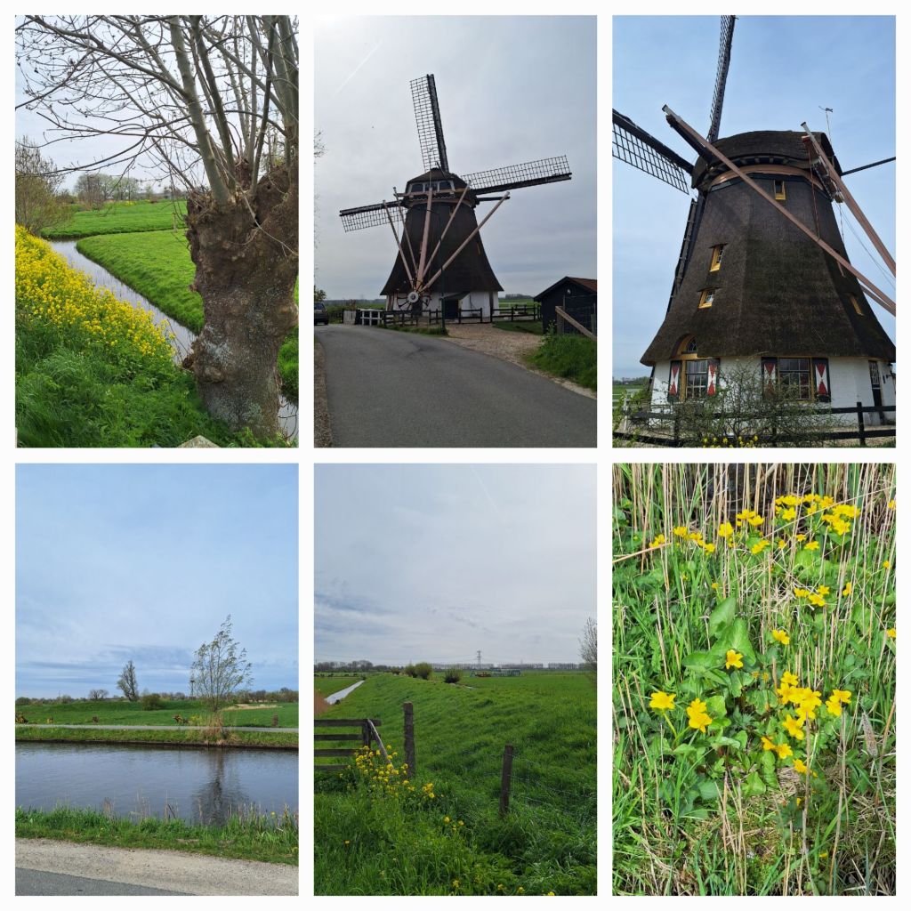 Vorige keer liepen we langs Gein Noord, nu pakken we Gein Zuid. Prachtige boerderijen, knotwilgen en veel bloemen en bloesem. Dotterbloemen aan de waterkant, slootswallen vol met koolzaad, paardebloem, fluitekruid en dovenetel. Sierkers, magnolia en appelbomen in de tuinen. Het is gewoon feest.