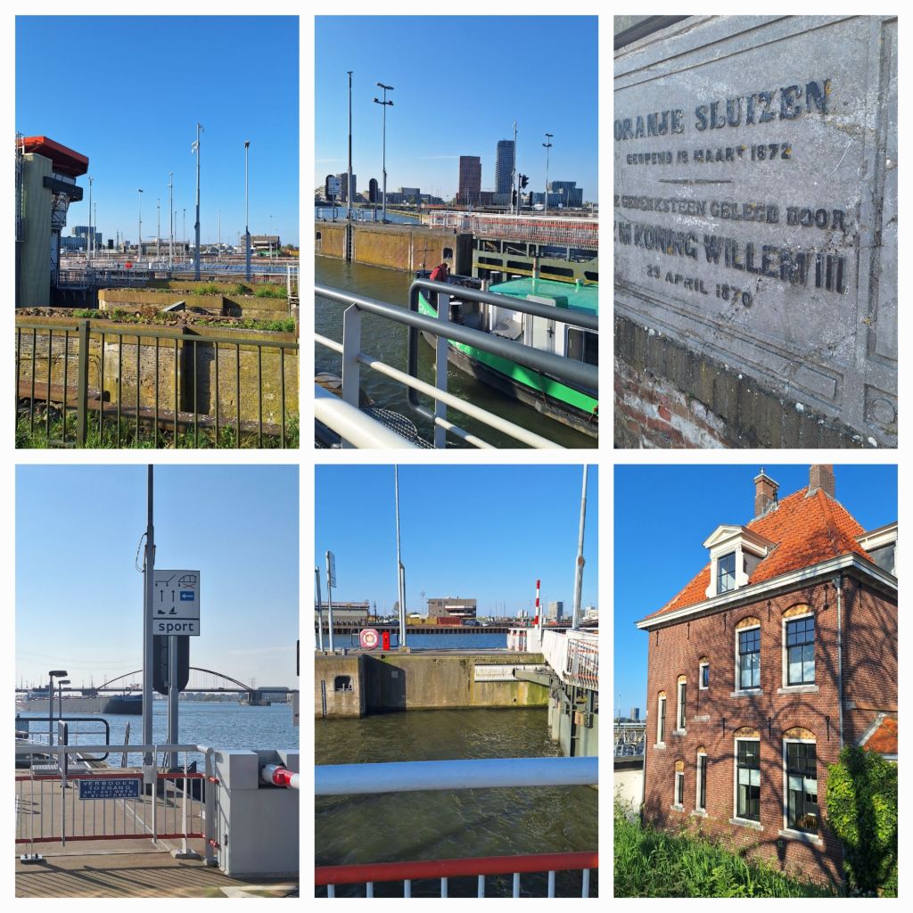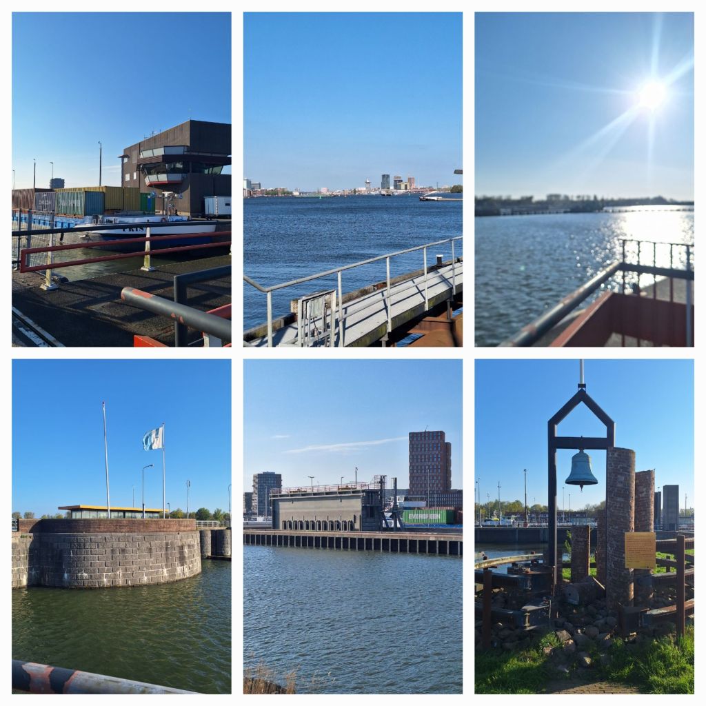 Ik loop op mijn gemak over het complex. Overal staan informatieborden, een groot containerschip ligt in de zuidelijke sluis. Van de noordelijke sluizen liggen er twee vol, maar ik mag niet verder. Slagboom en stoplicht. Wat nu? Ik blijf staan kijken en ineens gaat het licht op groen en de boom omhoog.