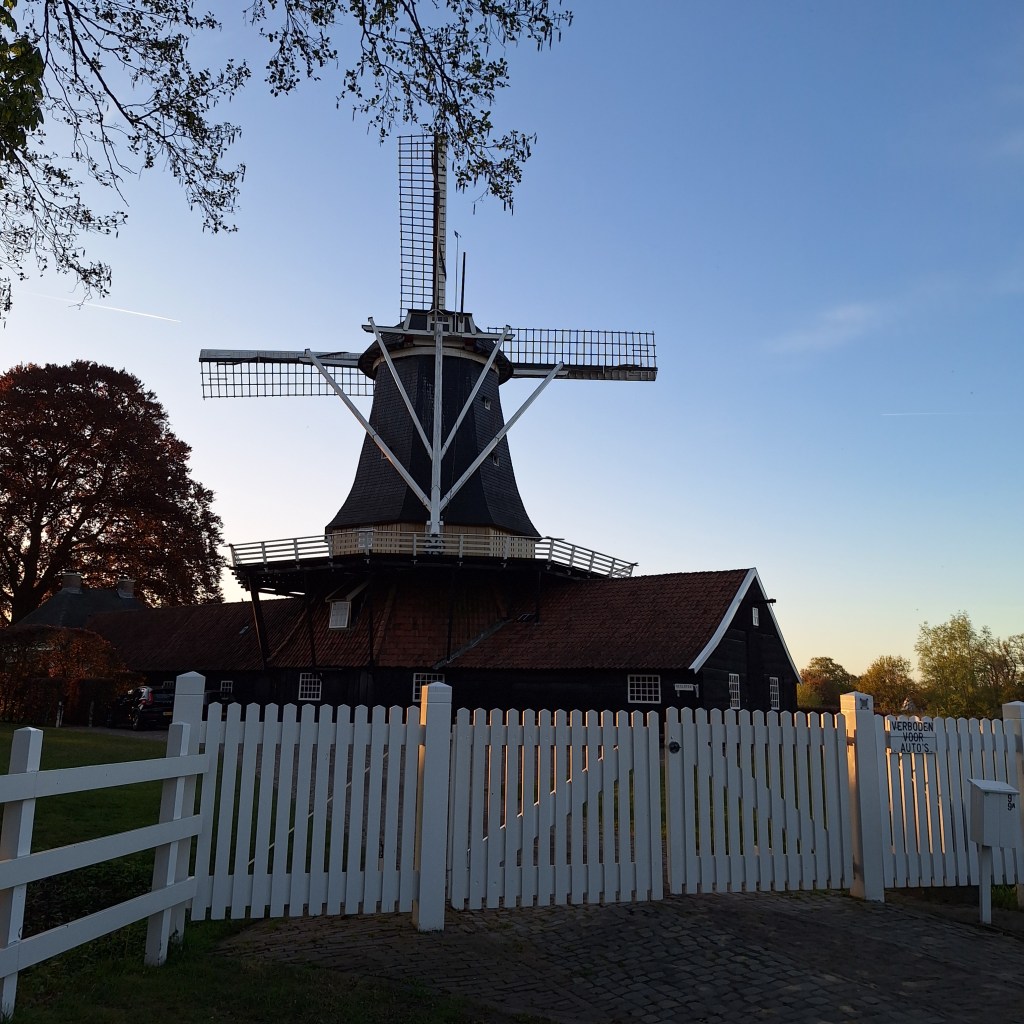 Ik loop nog even naar de olie- en pelmolen uit de 18e eeuw. De molen staat aan de oever van de Regge. In de omgeving werd veel kool- en lijnzaad verbouwd. Die zaden werden in de onderbouw tot olie geslagen, terwijl boven, op de 4e verdieping gerst werd gepeld. De molen heet Ter Horst naar de bouwer. Die liet trouwens de molenromp uit Noord-Holland komen, uit de Beemster.