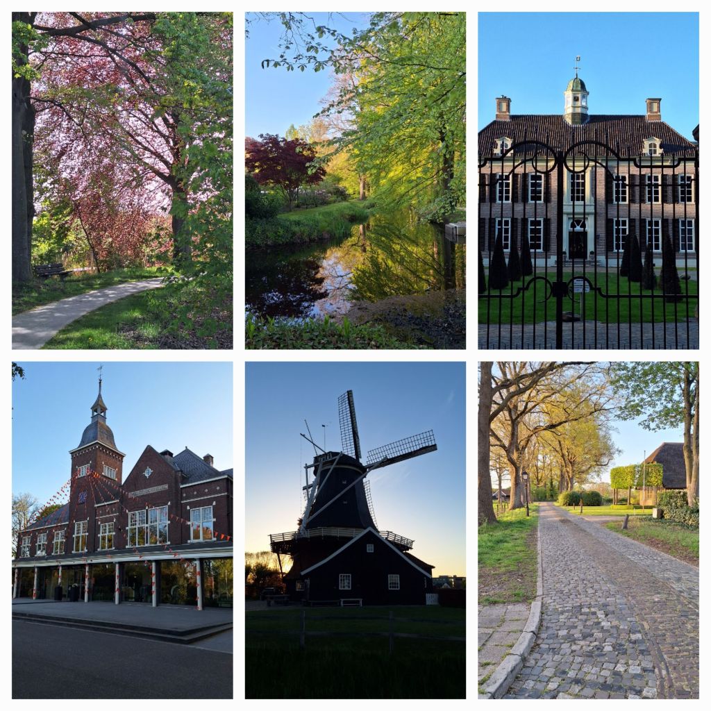 Even niet meer fietsen, maar na de douche ga ik toch nog een korte wandeling maken. Ik blijk nl. ongeveer naast Havezathe Oosterhof te verblijven. Ik loop het prachtige park door en zie dat de voorbereidingen getroffen zijn voor Koningsdag. Overal staan dranghekken klaar, vlaggetjes hangen al.
